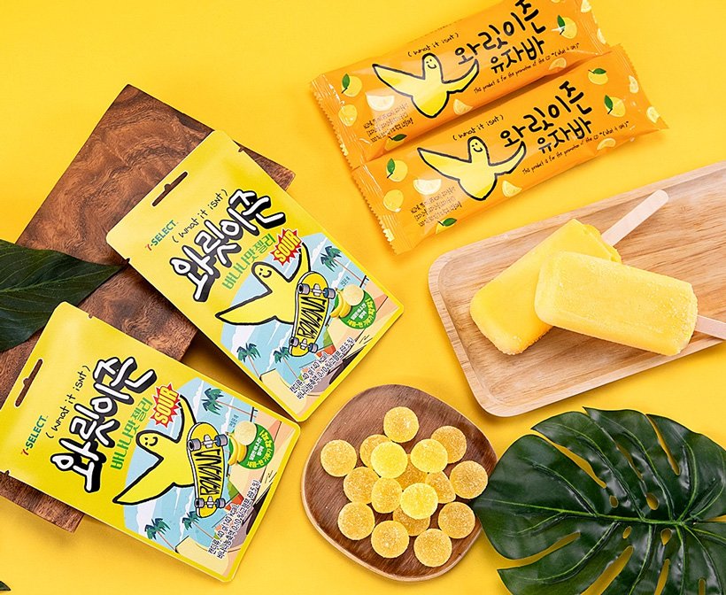 세븐일레븐은 스트리트 브랜드 와릿이즌과 협업한 제품으로 ‘젤리’를 출시한 바 있다. 와릿이즌은 패션 플랫폼 무신사 내에서 좋아요 수가 20만 개에 달하는 브랜드로, 특히 1020 세대에게 인기가 많은 것으로 알려져 있다. 와릿이즌의 이미지를 활용한 제품은 달콤한 바나나맛 젤리로, 새콤한 사우어 더스팅을 묻혀 새콤달콤하게 즐길 수 있는 제품이다. 세븐일레븐 편의점에서 개당 1,500원의 판매가로 만날 수 있다.