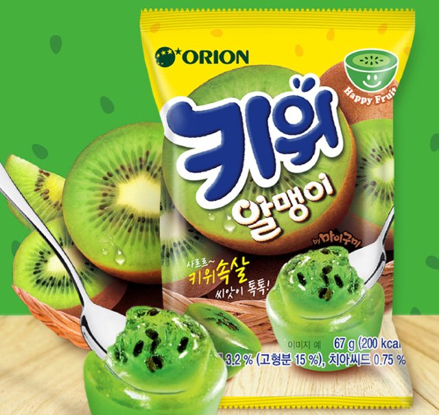 오리온은 키위의 맛과 모양을 젤리로 구현한 신제품 ‘마이구미 키위알맹이’를 출시했다. 신제품은 과일과 흡사한 맛과 모양, 식감의 마이구미 알맹이 시리즈의 네 번째 제품이다. 반구 모양의 외관은 쫄깃한 젤리로 만들었다. 속은 입 안에서 사르르 녹는 속살 식감을 표현했으며, 실제 키위 과즙을 함유해 새콤달콤한 맛을 더하면서 치아시드로 씹히는 식감까지 구현했다. 편의점 기준 판매가는 1,100원이다.