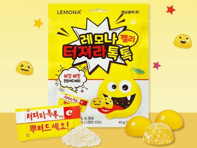 경남제약은 레모나 젤리의 인기에 힘입어, 상큼한 사우어(신맛) 젤리를 출시했다. 비타민C와 비타민B6, 비타민B2의 하루 영양 성분 기준치를 충족할 수 있는 제품이다. 톡톡 튀는 파핑 가루를 젤리에 뿌려서 먹으면, 씹는 순간 입 안에서 새콤함이 튀는 느낌을 느낄 수 있다. 위생적으로 보관하고 휴대할 수 있는 지퍼백 포장을 적용한 제품이다. 편의점 CU에서 만날 수 있는 제품으로, 가격은 2,000원이다.