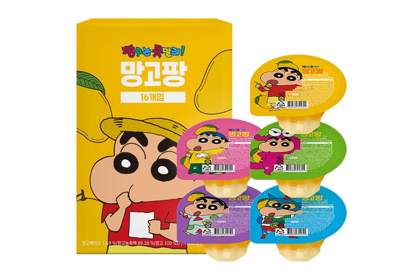 인기 캐릭터 IP인 ‘짱구는못말려’를 활용한 젤리 제품을 편의점에서 만날 수 있다. ‘짱구 망고팡 젤리’가 바로 그것이다. 투명한 젤리 속으로 다양한 과일 알갱이가 보이도록 만들어진 제품이다. 겉의 포장지에는 다양한 모습을 한 짱구의 모습을 담아, 보기만 해도 흐뭇함을 느낄 수 있다. 다만 겉의 포장지만 다를 뿐 안의 내용물은 망고 알갱이를 활용한 동일한 맛이다. 가격은 개당 1,500원이다.