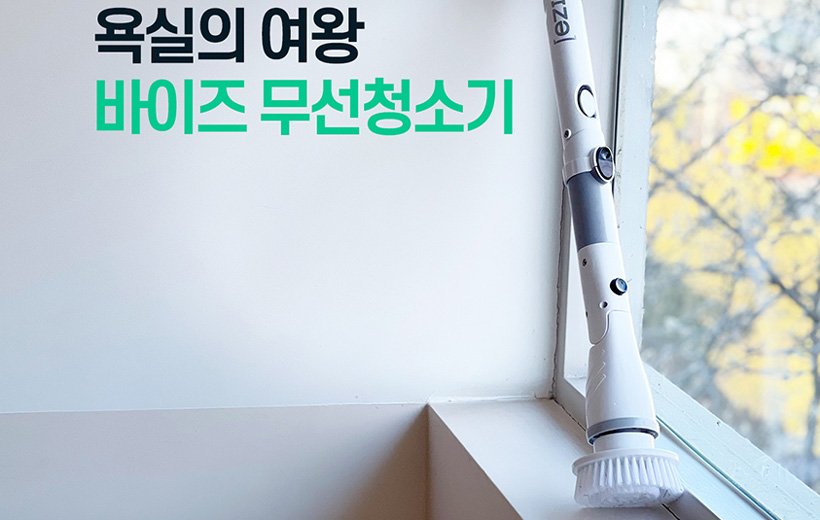 욕실의여왕 바이즈 무선 청소기는 분당 320회의 회전력으로 작동하는 무선 욕실 청소기다. 스크럽 브러시, 광택 브러시, 평면 브러시, 틈새 브러시의 네 종류의 브러시 헤드를 본품과 함께 제공한다. 봉의 길이는 2단으로 조절할 수 있어 쉬이 손이 닿지 않는 곳도 쉽게 청소할 수 있으며, IPX4 등급의 방수 설계가 적용돼 편리하고 안전하게 사용할 수 있다. 공식몰 판매가는 54,800원이다.