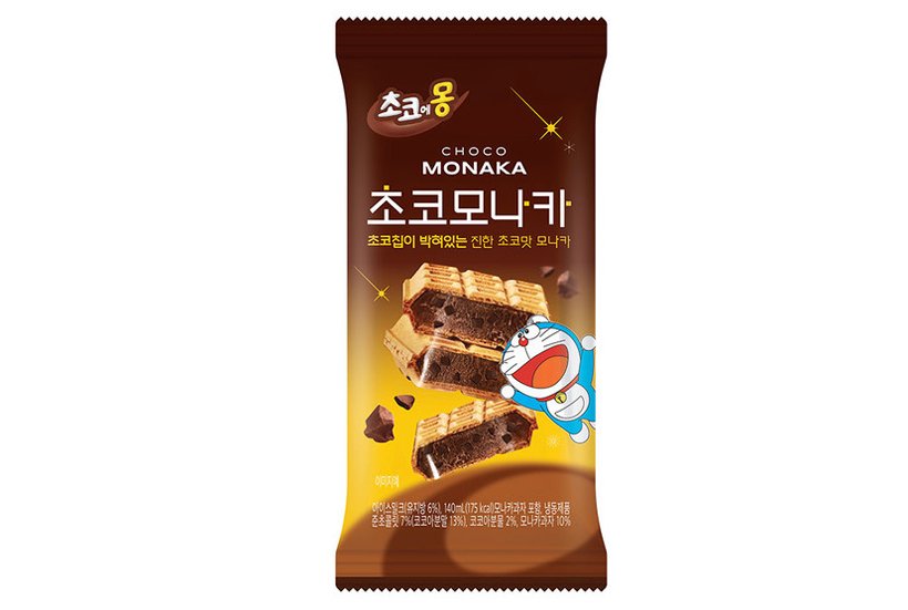 ‘초코에몽’은 남양유업이 도라에몽을 마스코트로 생산하는 초콜릿 우유의 브랜드다. 진한 초콜릿을 활용한 유제품을 다양하게 선보이는 브랜드인데, 최근에는 초콜릿 아이스크림을 활용한 모나카 신제품을 출시했다. 이름은 ‘초코에몽 초코모나카’로, 초코칩이 박힌 진한 초콜릿 풍미의 모나카 아이스크림이다. 본 제품의 권장 소비자가는 2,500원이며, 아이스크림 할인점 등지에서는 더 저렴한 가격으로 만날 수 있다.