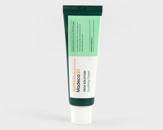 마데카21 테카솔루션 수딩 크림은 센텔라아시아티카 정량 추출물과 병풀 추출물을 조합해, 피부의 자극은 잠재우고 수분을 채울 수 있는 수딩 더마 제품이다. 얇은 보습막이 피부를 편안하게 감싸고 부드럽게 스며드는 크리미한 텍스처를 가지고 있다. 인체 적용 시험을 통해 1회 사용으로 피부 각질층 12층까지 보습이 개선되는 데 도움이 되는 기능성을 입증한 바 있다. 50㎖ 용량 제품을 다이소 매장에서 개당 5,000원의 판매가로 판매하고 있다.