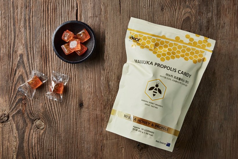 디어패밀리 마누카꿀 프로폴리스 캔디는 프로폴리스를 넣어서 만든 캔디다. 뉴질랜드 야생에서 자라는 마누카 꽃에서 채집한 꿀을 프로폴리스와 함께 넣어서, 마누카 꽃의 은은하면서도 쌉쌀한 향기를 머금은 단맛을 느낄 수 있다. 뉴질랜드에서 제조한 완제품을 우리나라에 직수입해서, 낱개 포장으로 간편하게 즐길 수 있도록 만들었다. 300g 용량의 종이팩 하나의 판매가는 28,000원이다.