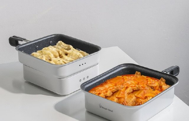 매직쉐프의 인덕션은 인덕션과 냄비, 프라이팬이 모두 갖춰진 올인원 제품이다. 휴대할 경우를 감안해 조리기구가 인덕션 안에 들어갈 수 있는 구조로 만들어져, 휴대와 수납이 용이하다. 냄비의 용량은 1.5리터로 넉넉하며, 프라이팬은 냄비 뚜껑으로도 활용할 수 있다. 약모드일 시에는 400W, 강모드일 때는 800W의 출력으로 동작한다. 본 제품의 온라인 최저가는 119,000원으로 확인된다.